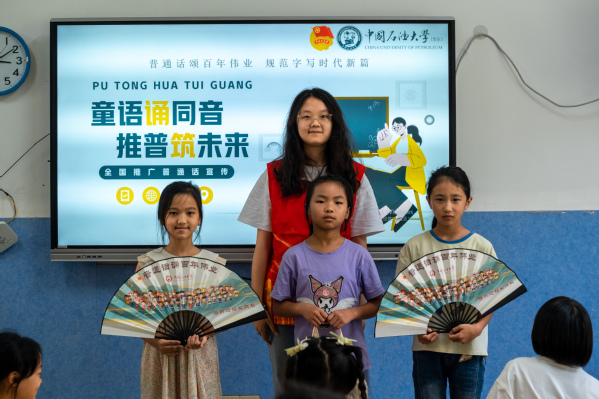 在日新月异的现代社会洪流中,普通话作为中华民族共同的语言纽带,其地位与作用愈发显得举足轻重。普通话不仅承载着沟通无碍的便捷,更是促进文化认同、增强国家凝聚力的关键力量。为了积极响应国家关于推广普通话的号召,深化语言文化在青少年群体中的影响力,中国石油大学(华东)600全讯白菜官方网站“领航工程”语韵边疆实践队于8月12日至13日,踏上了前往四川省珙县底洞镇小学的旅程,于两天内分别为三四年级学生开展了一场以“童语诵同音,推普筑未来”为主题的普通话教学活动。