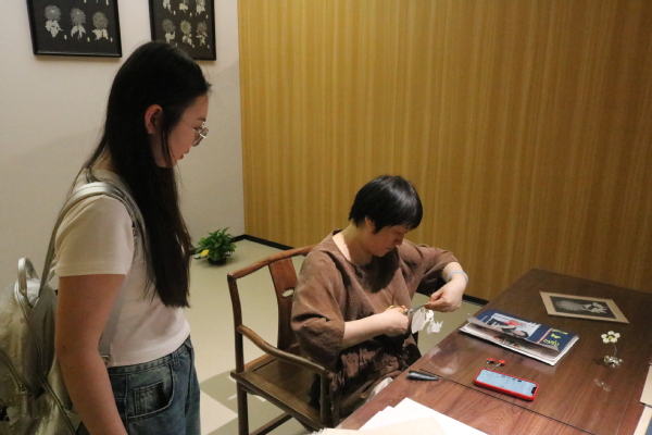 “提及张震梅大师,我的心中便涌动起一股难以言喻的敬仰之情。她以一把简简单单的剪刀,一张普普通通的纸,作为画笔和画布,倾注了整整一生的光阴,绘制出了一幅幅震撼人心的文化瑰宝画卷。这不仅仅是技艺的展现,更是对传统文化深沉热爱的流淌,是对非遗精神无悔坚守的颂歌。”实践队成员滕慧表示。