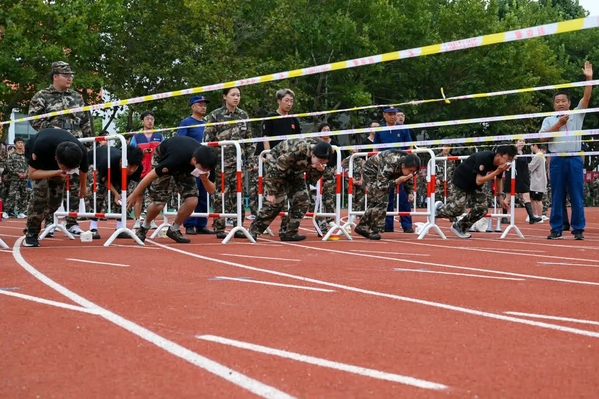 下午,学生们参与了紧张激烈的消防运动会,在活动中提高防火意识、增强自救能力。随后,在教官的组织带领下学生们进行齐步行进与立定、正步动作等训练。他们不约而同地以最高的标准要求自己,将教官教授的口令熟记于心,力图将每个动作都做到规范整齐,展现出文法学子精益求精的精神和坚韧不拔的意志。