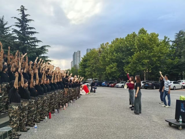 歌咏比赛赛前准备,唱响青春旋律。在紧张的训练之余,文法学子们积极投入到歌咏比赛的赛前准备中。“我的梦想,照耀前方”、“你的信仰,点燃勇气”。一个个音符、一句句歌词,飘扬在训练场上。在排练过程中,学生们热情高涨,歌声嘹亮。指导人员耐心地指导同学们的发音、节奏和情感表达,力求让每一个表演都达到完美。每个人都全神贯注,准备在今晚的歌咏比赛中一展风采。