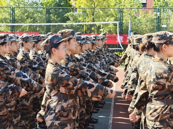 步法变化与方队分列式训练,彰显钢铁意志。训练场上,口号声震天动地,学生们身着迷彩服,步伐矫健,身姿挺拔。在步法变化训练中,他们全神贯注地听从教官的口令,认真地完成每一个动作。从立正、稍息到齐步走、正步走,每一次抬腿都带着果敢,每一次摆臂都充满力量。方队分列式训练更是一次对团队协作能力的考验。全体成员齐心协力,保持整齐的队列,以统一的步伐和节奏向前迈进。他们目光坚定,神情专注,仿佛一支即将出征的钢铁之师。在烈日的炙烤下,学子们汗流浃背,但他们没有丝毫退缩,用顽强的毅力和坚定的信念,诠释着青春的拼搏与奋斗。