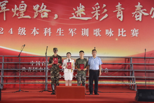 当《北京石油学院学生之歌》的旋律响起,文法学子们用悠扬的歌声诉说着对知识的渴望和对未来的憧憬,仿佛带领大家穿越时光,回到了那个充满理想与激情的岁月。《一百》《中国人民解放军战歌》《新的天地》则以其激昂的节奏和振奋人心的歌词,展现了青年的青春活力与拼搏精神,学生们的声音如同一阵阵冲锋的号角,彰显出钢铁般的意志和保家卫国的决心以及对新时代的赞美和对美好未来的向往。