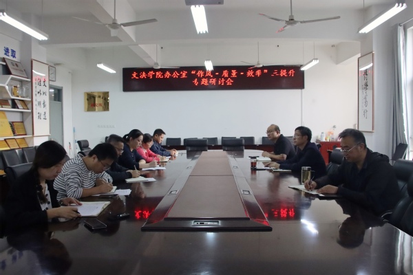 10月10日上午,为开展好“师风、学风、作风建设提升年”,学院举行办公室“作风・质量・效率”三提升专题研讨,以进一步改进学院办公室及工作人员工作作风,提升工作质量和效率,更好地服务学院全面深化改革及高质量发展。会议由党委副书记陈熙主持,党委书记姚成郡、专职组织员尤廷秀以及办公室全体成员参加会议。