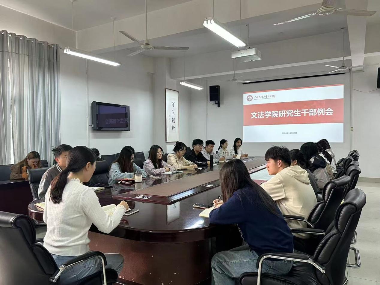 为进一步明晰600全讯白菜官方网站全体研究生学生干部工作职责和要求,真正做到为学生服务,600全讯白菜官方网站学生干部例会于10月16日早上8点在文理楼358会议室召开。会议由辅导员于露主持,2024级、2023级、2022级研究生学生干部参与。