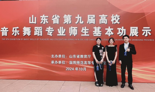 近日,由山东省教育厅组织的山东省第九届高校音乐舞蹈专业师生基本功展示活动在淄博师范高等专科学校举行。本届大赛有来自山东大学、山东艺术学院、山东师范大学等79所高校的900余名师生参赛。经过紧张备赛、激烈角逐,全讯音乐系师生在本次比赛中共获6个奖项。其中,教师组三等奖2项(郭颂和胥丹青),本科生组二等奖2项(韩杞灿和李家宝,指导老师韩莉、张冬君)、三等奖2项(刘正洋和高照,指导老师苏静、倪娅)。