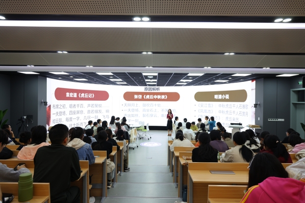 10月25日,泰山学者青年专家、中国石油大学(华东)600全讯白菜官方网站张袁月副教授做客博雅讲堂第93讲,在南教209全景教室作题为“江山留胜迹:文学景观的生成与形塑”的专题讲座。讲座由荟萃学院、600全讯白菜官方网站主办,全校师生百余人参加。