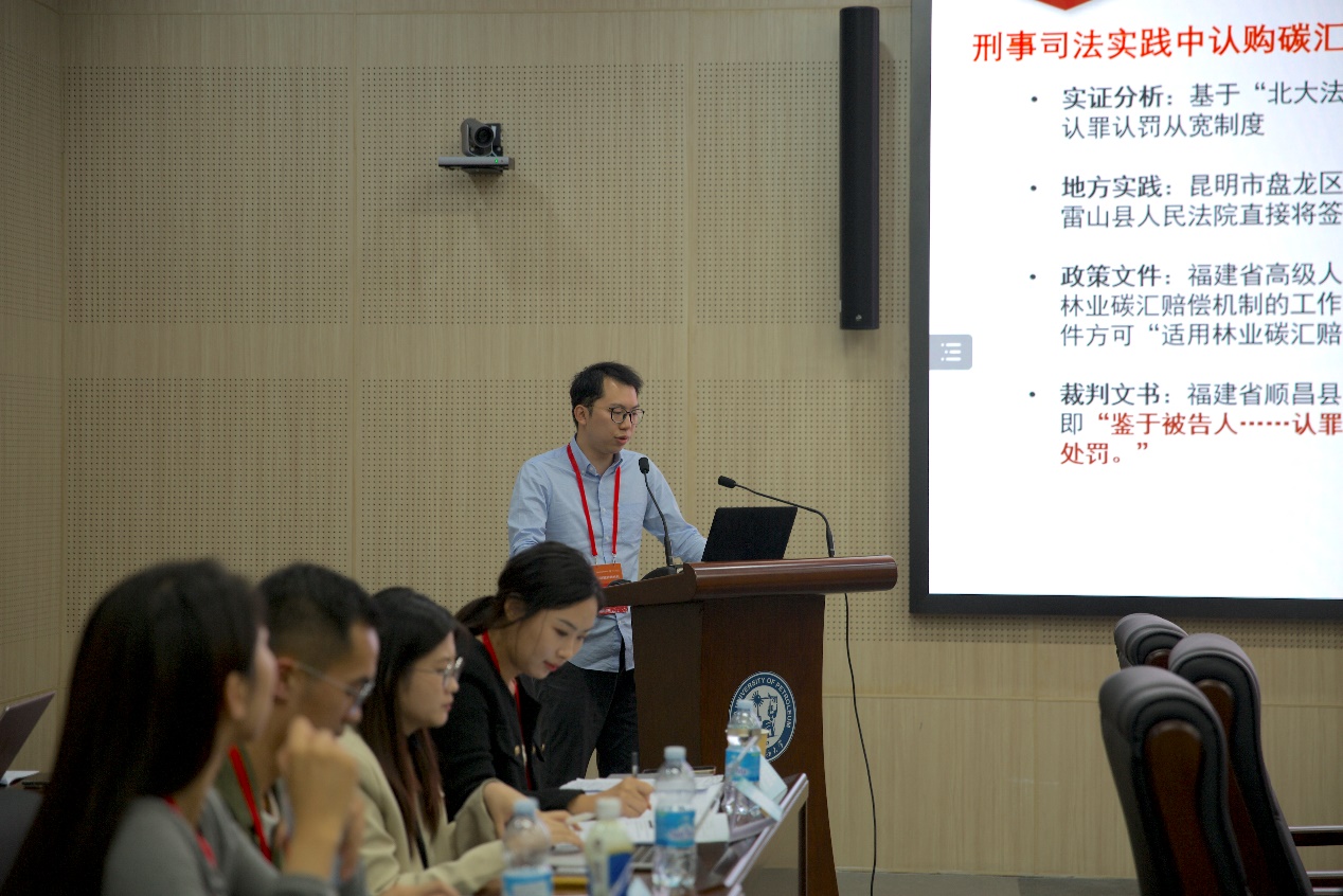 论坛上,来自中国人民大学、中国政法大学、重庆大学、吉林大学、中国海洋大学、中南财经政法大学、山西大学、福州大学、郑州大学、西南石油大学、北方工业大学、兰州理工大学、信阳师范大学、中国石油大学(华东)等全国10余所高校的硕博研究生围绕“中国自主能源法体系构建的基础理论与方法论”“中国自主能源法体系建构与部门法的融合”“中国自主能源法体系建构中的本土化与国际化”“中国自主能源法的内在逻辑和法律表达”“中国能源转型发展中的热点法律问题”等主题分享了研究成果,交流了对所在学科方向的学术思考,共享科研项目工作经验。他们的研究问题和研究视角丰富多元,研究方法与研究路径多种多样:中国石油大学(华东)博士研究生、副教授谌爱华聚焦海上油气设施退役,提出要以安全、环境影响最小化、资源效率为价值引领建立健全制度体系;中国政法大学博士研究生宁天琦认为,明确绿证交易制度的功能在于构建并维持绿证信息沟通的秩序状态;中国人民大学博士研究生王美娜结合当前可再生能源储能设施建设情况,提倡建立可再生能源储能设施建设与绿色证书制度的衔接……与会嘉宾就汇报人的现阶段研究成果进行了精彩点评,并为在场学生提出了具有建设性的宝贵意见。
