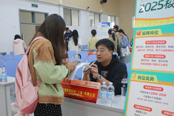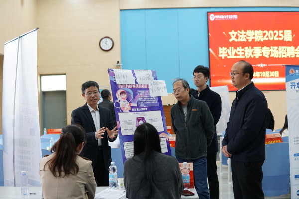 为进一步拓宽毕业生求职就业渠道,推动毕业生与用人单位之间精准供需对接,全力促进毕业生高质量充分就业,10月30日,600全讯白菜官方网站于南教300举办2025届毕业生秋季专场招聘会。学校学生就业指导中心副主任朱景顺,学院党委书记姚成郡、党委副书记陈熙到场与毕业生和用人单位深入交流。