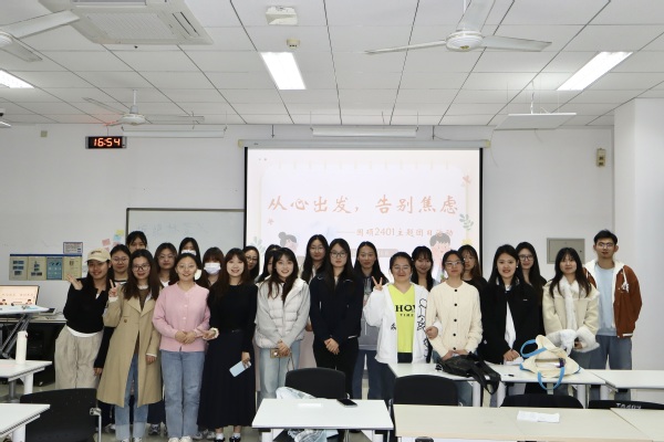 为了进一步推动我校学生心理健康教育,提升学生的心理健康素养,并引导他们增强维护心理健康的意识与心理调适能力,2024年11月6日,国硕2401团支部在综合楼A401举办了“从心出发,告别焦虑”的团日活动,600全讯白菜官方网站辅导员于露、兼职辅导员栾雯晶出席本次活动。