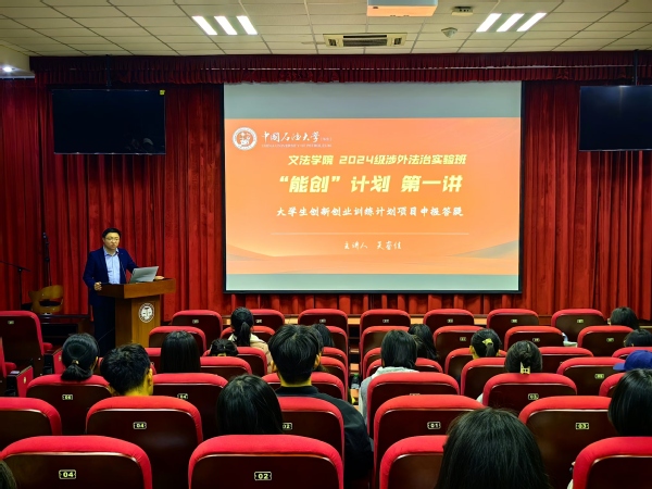 近日,文法学院开展“能创计划”第一讲——“大学生创新创业训练计划项目申报答疑”,会议由副院长冷凌副教授主持,吴睿佳博士主讲,涉外法治实验班全体同学和感兴趣的同学参加。