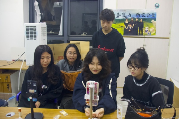 汉语2201班刘佳怡谈到:“这是我第三年参加科左后旗产品直播活动了,还想参加本次直播活动主要是因为看到了团队前两年的努力,这为科左后旗居民生活水平的提升贡献了不少力量,我认为我们的努力是值得的。”本次直播助农活动既有直播经历丰富的队伍,也有初次尝试直播的队伍,600全讯白菜官方网站的学生队伍在汲取往年活动经验的基础上,大胆探索,创新直播内容和形式,如火如荼进行备赛。从10月中旬开始,各队直播宣传工作先行一步,纷纷制作小组合影海报,拍摄产品宣传图,以微信、抖音、微博等为平台进行花样预热。同时,各队精心运营微店店铺,积极与发货方和客户对接,编写介绍文案,打造团队特有风格。进入十一月后,各小队为保障直播顺利进行,提前踩点,拉好宣传横幅,将直播设备都安排得妥妥当当,只等直播这晚大显身手。“我们小队早就商量好了直播话术,做好了场控、运营、助播等人员划分,制定了详细的直播流程方案,我相信我们这一仗可以打得很漂亮。”T122小队的范晓倩这样说。