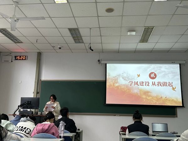 活动伊始,四位学生干部带来内容分享。汉语2401团支部书记吴明涵首先为大家带来了关于安全生产的主题分享。她详细讲解了安全生产的重要性,并通过播放微视频让同学们更加直观地了解到安全生产在日常生活和工作中的具体应用场景。随后,班长张健恒分享了自己的社会调研感悟。他指出,实地调研不仅能够深入了解社会现象,还能将所学知识应用于实践中,这对于汉语言文学的专业学习大有裨益。张健恒分享了自己在调研过程中的所见所闻,以及调研经历对自己的成长和启发。他号召同学们积极参与社会调研,用脚步丈量世界,用心灵感悟生活。接着,学习委员王姿彦围绕学风建设进行了发言。她指出,良好的学风是班级学习氛围的基石,也是同学们共同成长的保障。王姿彦呼吁大家珍惜学习时间,努力提升自我,共同营造积极向上的学习氛围。同时,她也强调了团结协作在学风建设中的关键作用,只有大家齐心协力,才能共同推动班级学风的建设和发展。生活委员孙璇则着重讲解了生活方面的安全问题。她提醒同学们注意用电安全,避免使用违规电器;同时,也要关注宿舍卫生和消防安全,确保生活环境的安全舒适。孙璇的分享让同学们深刻认识到,安全无小事,必须时刻保持警惕。同时,她也强调了团结协作在生活中的重要性,只有大家共同努力,才能确保生活环境的和谐与安全。