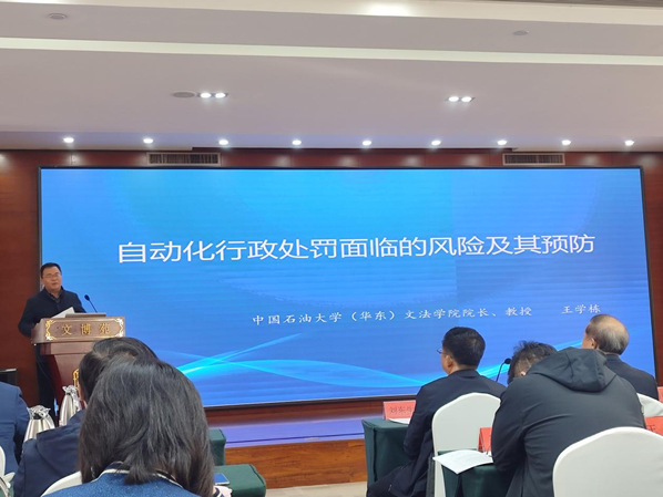 本届年会第一阶段进行研究会理事会换届,选举产生新一届理事会。王学栋教授当选山东省法学会行政法学研究会副会长,谌爱华副教授、李猛博士当选山东省法学会行政法学研究会理事。第二阶段以“中国式现代化山东实践要求下的行政法学和行政法治”为主题开展研讨。王学栋教授以《自动化行政处罚面临的风险及其预防》为题作主旨发言。