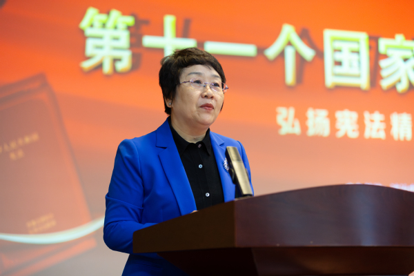 副校长张玲玲在讲话中回顾新中国成立以来宪法的颁布及修订历程,阐述宪法修正案对高校教育的深远影响,指出在新时代背景下,高校要不断适应和落实宪法的新要求。她指出,今年是新中国第一部宪法颁布70年,70年来,在党中央领导下,以宪法为核心的中国特色社会主义法律体系更加成熟完备,宪法使得广大人民群众有法可依、有法必依、有法可循。“未来的中国属于青年,法治中国的建设依靠青年。希望你们明法于心,守法于行,扎根人民,奉献国家,以青年之力,铸就法治辉煌。”她殷切寄语广大青年师生。
