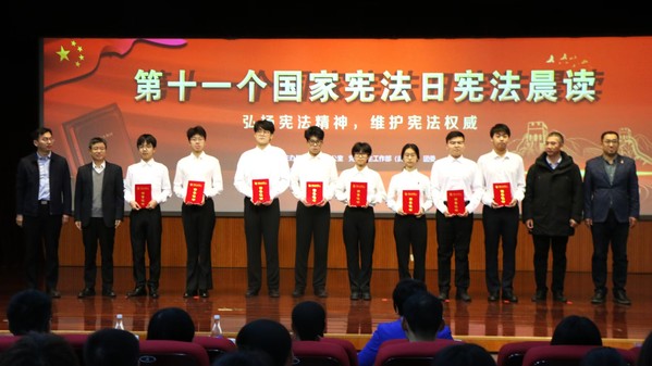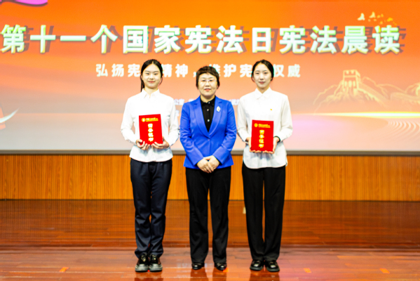 颁奖过后,学生代表演绎宪法主题歌曲《宪法伴我们成长》以及朗诵《宪法在我心中》,声声入耳、句句入心,传递着坚定不移走法治道路的决心和信念。