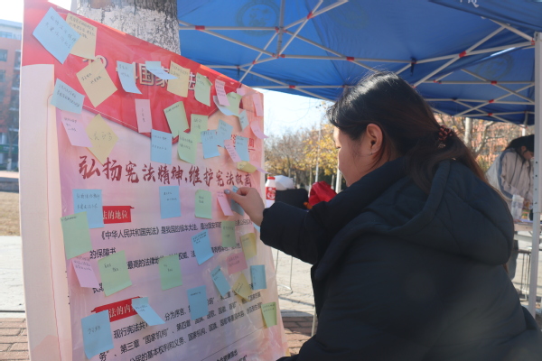 在校内宪法晨读声声朗的同时,文法师生走出校门,积极参与到青岛西海岸新区宪法宣传周暨首届法治文化节的宣传活动中,开展法律志愿服务,面向广大民众普及法律知识,为弘扬宪法精神及社会主义法治精神注入青春活力。后续,学院将策划开展专业讲座、主题展览、普法宣讲等一系列丰富多彩、意义深远的活动,积极营造尊崇宪法、学习宪法、遵守宪法、维护宪法、运用宪法的浓厚氛围。