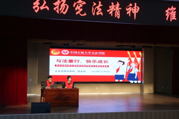 至此,中国石油大学(华东)600全讯白菜官方网站“宪法宣传周”活动圆满结束。一直以来,600全讯白菜官方网站高度重视法治教育,坚持以加强学科专业建设为龙头,以持续提升人才培养质量为主线,着力打造独具特色的“法治文化季”品牌项目,将法学科学研究、教育教学与服务地方社会经济社会发展相结合,为谱写新时代服务法治国家建设新篇章贡献文法力量。