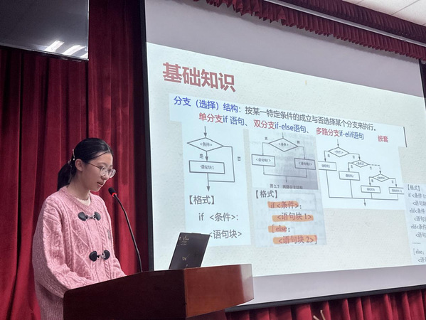 法学2303班李婧玮和法学2303班肖旭茜担任主讲人,讲解Python第一章和第二章的知识点和课本重点习题;第二期会议由法学2301班张海昌担任主讲人,讲解Python第三章知识点;第三期会议由法学2303班张文睿担任主讲人,讲解前三章的重点习题。在会议中,学生们展现出了极高的学习热情和专注度。互动环节中,学生们纷纷举手发言,提出自己在学习 Python 过程中遇到的问题和困惑,主讲人们都耐心地一一解答。主讲人们们还积极分享自己的学习心得和体会,与同学们共同交流,共同进步。