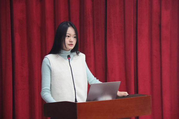 首先,贺小凡向与会人员详细介绍了我校青马工程:青年马克思主义者培养工程简称“青马工程”,自2007年团中央启动实施以来,便承载着为党培养一批批信仰坚定、能力突出、素质优良、作风过硬的青年政治骨干的光荣使命。它不仅是一项系统工程,更是青年成长成才的摇篮,是青年学子锤炼思想、提升能力、奉献社会的广阔舞台。使与会人员对于我校青马工程有了初步认识,随后,向与会人员介绍本期主讲人:校团委组织部青马工程负责人、第29期青马4班班长刘佳怡。