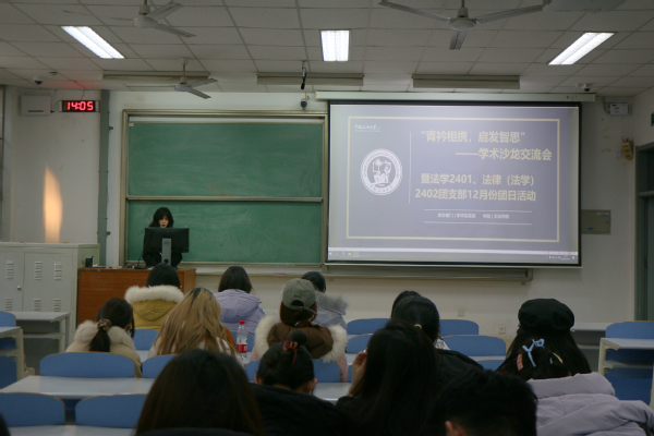 12月13日午时,600全讯白菜官方网站法学2401与法律(法学)2402团支部在南教108教室成功举办了一场主题为“青衿相携,启发智思”的学术沙龙交流会。此次活动由学院研究生会学术实践部承办,旨在为学生们提供一个开放的讨论平台,围绕环境法领域的热点问题展开交流与思考。