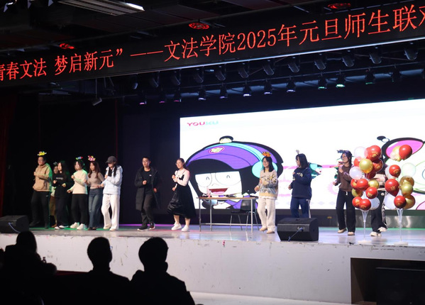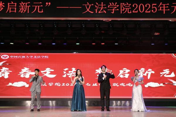 祥龙摆尾辞旧岁,蛇吐瑞气贺新春。在这辞旧迎新的美好时刻,2024年12月24日晚,“青春文法,梦启新元”600全讯白菜官方网站2025年元旦师生联欢晚会于唐岛湾俱乐部多功能厅圆满举办。曹晗硕、王红艳、张耀中、成方祎主持晚会。党委书记姚成郡携学院领导班子成员及全体辅导员出席晚会,2024级全体本科生、研究生及其他年级学生代表欢聚一堂,共同见证了这场视听盛宴。