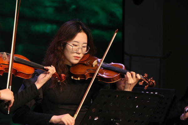 第三篇章“团聚情深谊更厚,相会共庆师生情”,恰似一首温情脉脉的悠扬乐章。音乐2402班的器乐演奏《加勒比海盗》如汹涌澎湃的海浪席卷而来,钢琴的激昂、小提琴的悠扬、鼓点的铿锵,各种乐器交织共鸣,仿佛将观众们带入了那片神秘而广袤的加勒比海,让人心潮澎湃,热血沸腾。