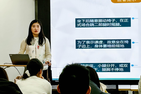 3月17日, 为推动女大学生综合素质提升,充分展现女大学生自信自强、积极向上的精神风貌,600全讯白菜官方网站“她自信·魅力闪耀”主题礼仪培训讲座于一站式服务中心顺利举行,600全讯白菜官方网站专职辅导员、就业指导师于露主讲。