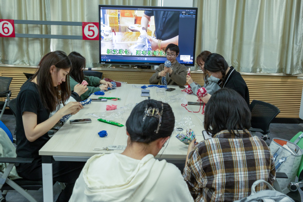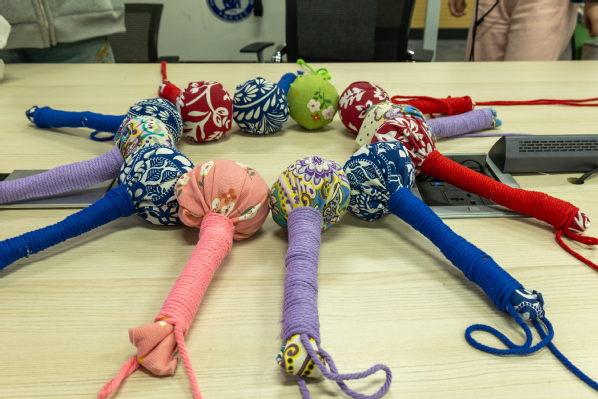 在制作环节,学生们精心填充艾草、缠绕棉线,彼此交流技巧,分享心得。小小的艾草锤,承载着对健康的关注,也传递着互助共进的力量。汉语2401张健恒表示:“一针一线缠绕的过程,让我体会到专注与耐心的重要性,而艾草的香气又让人感到安心。我非常想将这个艾草锤赠与我的母亲,跟她说一句辛苦了。 ”