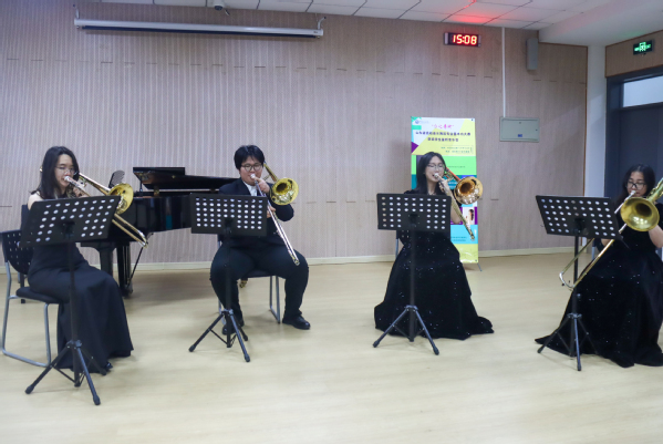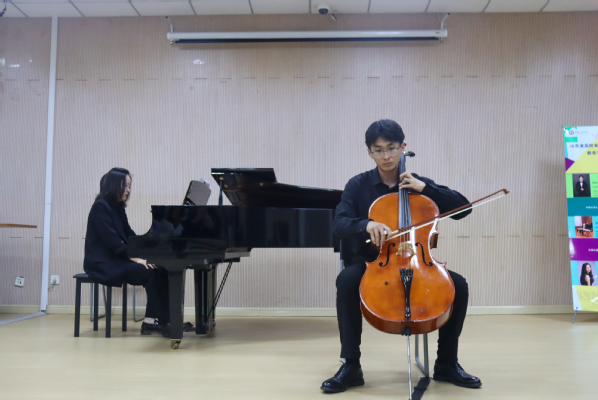 器乐演奏同样精彩纷呈。刘正洋的古筝独奏《如是》以传统技法融合现代审美,带来一场听觉盛宴;丁枫的大提琴《弗朗肖姆练习曲》展现了扎实的学院派功底;李家宝演绎的《拉罗d小调大提琴协奏曲》通过大提琴深沉的叙事与钢琴的激情对话,还原了法国充满戏剧张力的浪漫主义,为观众构筑起宏大的音乐史诗;路金哲、张文清、王诺婷、王雅雯的木管四重奏《布鲁克那练习曲》,则以精准的和声把控再现德奥音乐的严谨结构。