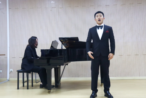 声乐展示环节中,韩杞灿演唱的《两地曲》以醇厚的男高音诠释游子乡愁,音乐系尹国峰老师献唱的咏叹调《爱永在》,以歌剧《沂蒙山》的磅礴旋律,讴歌了军民鱼水情的永恒主题。