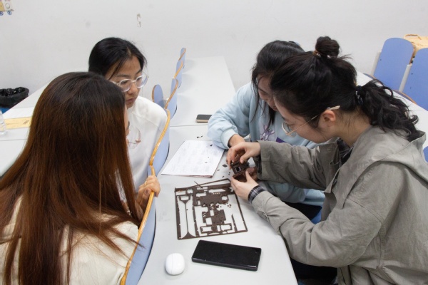 回到学校后,团支部成员们满怀热情,在教室开展了手工拼木船模型的活动。学生们分组参与船模拼装,亲手体验木料打磨、部件拼接等基础工序。成员们反复调整砂纸角度打磨至光滑无毛刺,确保榫头严丝合缝。面对复杂的榫卯结构,团队通过分工协作,齐心协力组装,历时两小时,两艘精巧的木船模型最终成型。团支部成员陈晓璐表示:“亲手完成模型后,才真正理解‘匠心’二字的重量。”