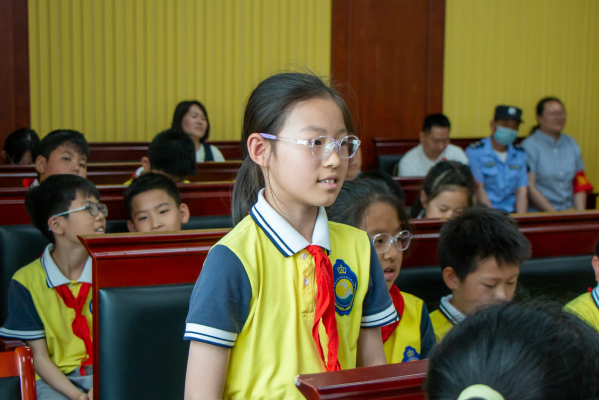 第一课堂层面,法学专业课程的设置为学生打下坚实的专业基础,完成了对法律知识的输入与积累。第二课堂层面,活动通过沉浸式体验进一步实现了法律知识的应用与输出。法学学生进行模拟法庭活动,还原一起真实校园欺凌案件引发的庭审全过程,让“课本中的法”变为“行动中的法”,提升了未成年人自我保护及犯罪预防意识。在互动问答环节,法官引导小学生从“被动听讲”转向“主动求解”,大大调动了孩子们的求知欲。活动结束后,家长代表反馈此次活动有利于实现法治教育从知识积累到价值认同的跨越发展。