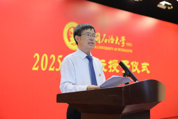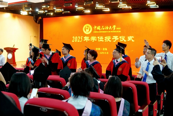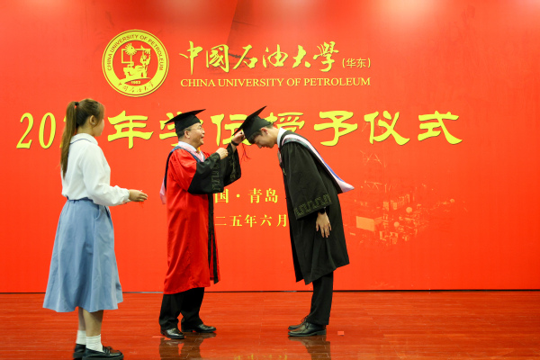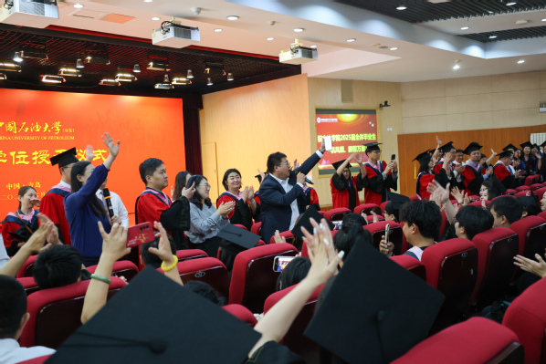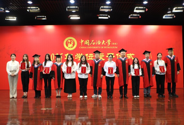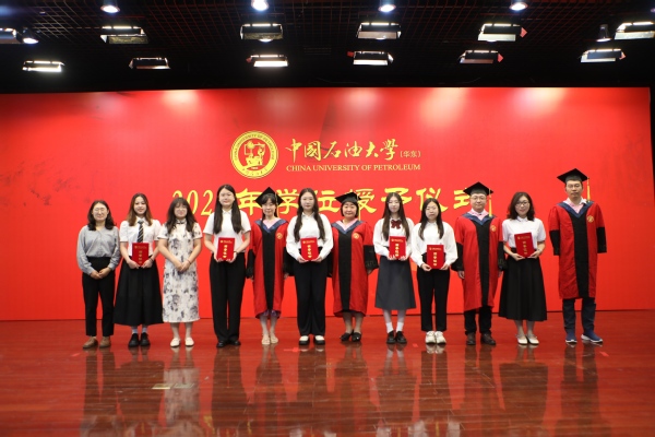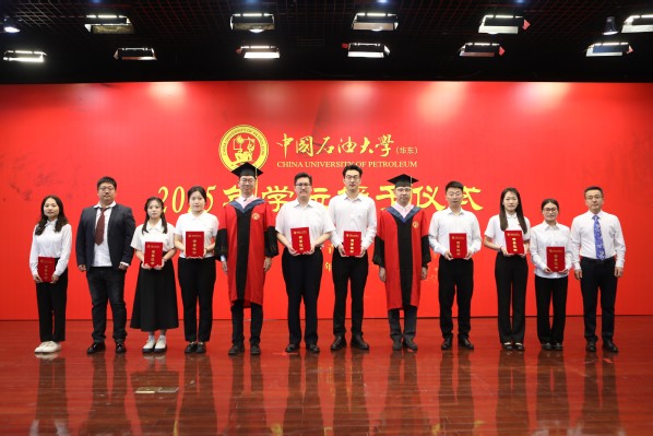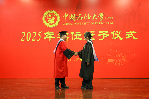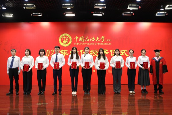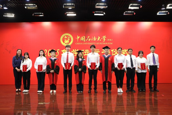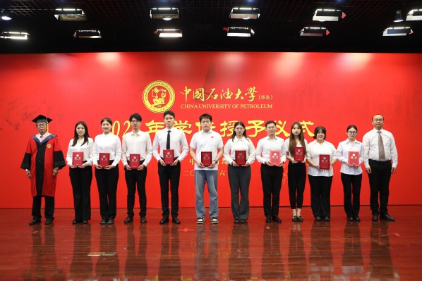 党委书记姚成郡宣读《关于表彰2025届优秀毕业生的决定》,王梦科等21名学生获评“中国石油大学(华东)优秀毕业生”荣誉称号,王浩等32名学生获评“600全讯白菜官方网站优秀毕业生”荣誉称号。教师代表依次为获奖学生颁发荣誉证书。