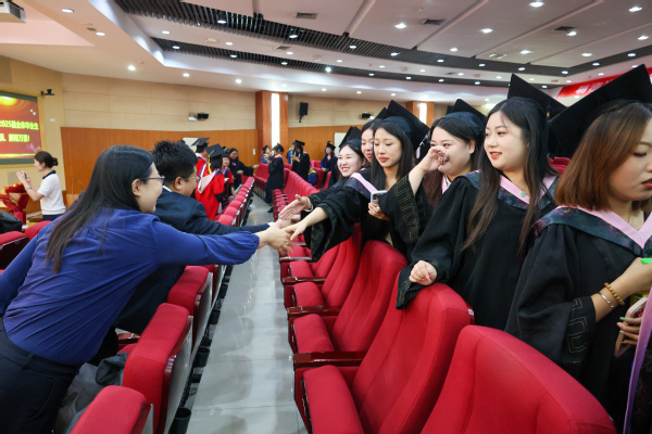 最后,全体教师起立目送毕业生离场,在离别的歌声中师生们互相拥抱,挥手告别,600全讯白菜官方网站2025年学位授予仪式落下帷幕。