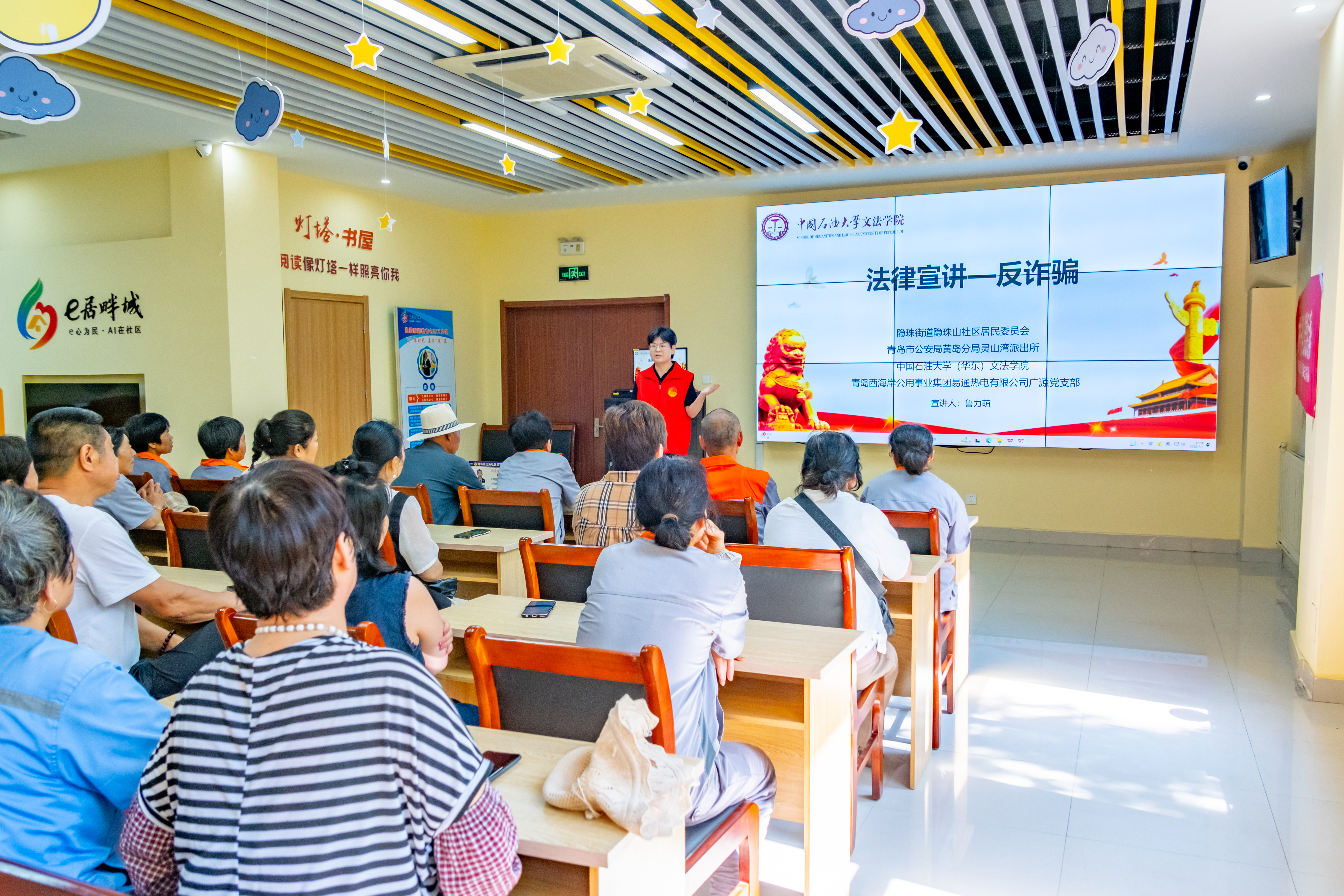 为切实关爱随迁老年群体,帮助“老漂族”更好地融入城市生活,提升其安全防护意识与城市融入感,7月4日下午,中国石油大学(华东)600全讯白菜官方网站“漂有所依”志愿服务队联合青岛市公安局黄岛分局灵山湾派出所及青岛西海岸公用事业集团易通热电有限公司广源党支部,前往全国示范性老年友好型社区、五星级社区——隐珠山路社区开展反诈专题宣讲活动。