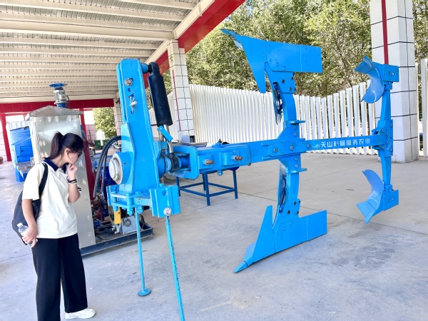 实践队来到新疆天业节水灌溉股份有限公司。在企业展厅,各类节水灌溉设备和智能农用机械让队员们大开眼界。技术员详细讲解了压力补偿滴灌带、内镶式滴灌带等创新产品的工作原理,从滴灌带如何精准控制水流,到如何适应不同地形和作物需求。现场演示的智能水肥一体化系统更是让队员们赞叹不已。这些设备不仅节水高效,更能精准控制水肥配比,真正实现了智慧农业。队员卢彦博在调研笔记中写道。