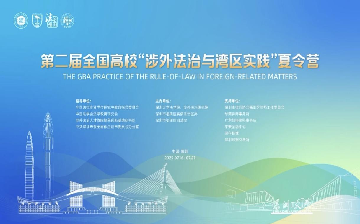 7月16至7月20日,第二届全国高校“涉外法治与湾区实践”夏令营在深圳大学丽湖校区举办。本次夏令营由全国法律专业学位研究生教育指导委员会等单位指导,深圳大学法学院等单位主办,并获得深圳市多所单位倾力支持。全讯法学专业学生杨亦然全程参加,获得“优秀营员”称号。