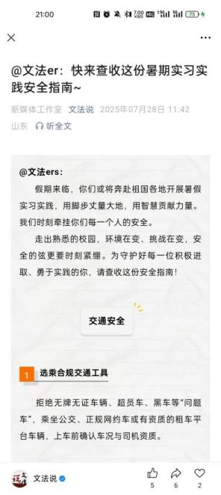 官微 “文法说”社会实践安全指南