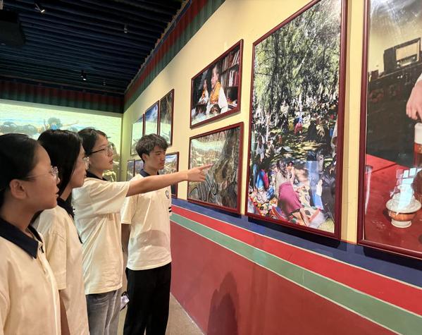 7月16日,实践队走进西藏博物馆,展厅内的文物如时光拼图,拼凑出西藏与内地各民族交往交流交融的过往。从吐蕃时期的器物,到元明清见证汉藏联系的遗存,再到记录新中国成立后发展的实物,各民族在政治、经济、文化领域互动的轨迹清晰可循。“文成公主进藏”展区的壁画与文献,生动还原了汉藏友好交往的场景,直观呈现出民族团结对西藏发展的深远意义。